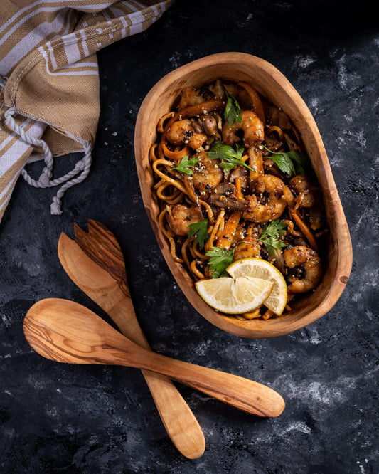 Olivenholz Rustikale Ovale Schüssel mit Salatbestecken