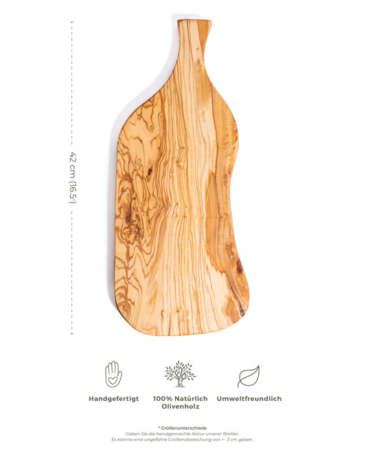 AusverkauftOlivenholzbrett mit Griff - 42x20 cm