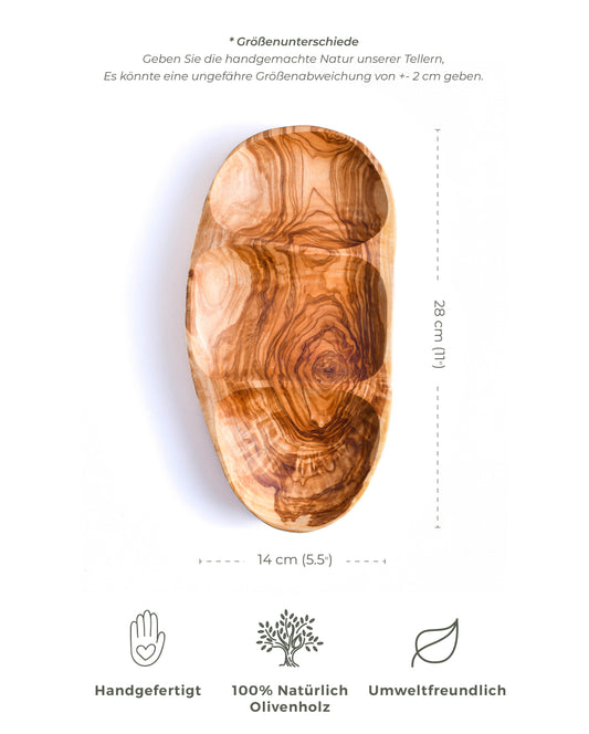 Olivenholz Servierplatte - 3 Fächer