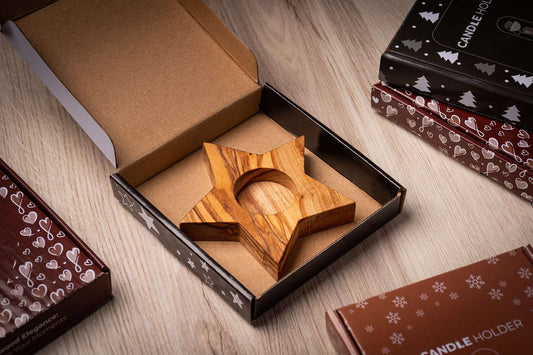 Teelichthalter aus Olivenholz - Sternform - 10x10x2 cm
