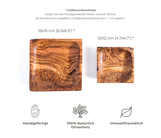 Set von 2 Quadratischen Olivenholz Snacktellern