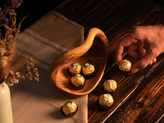 • Olivewood Darido Round Snack plate with Compartments | Eco-friendly, Handmade, and Elegant